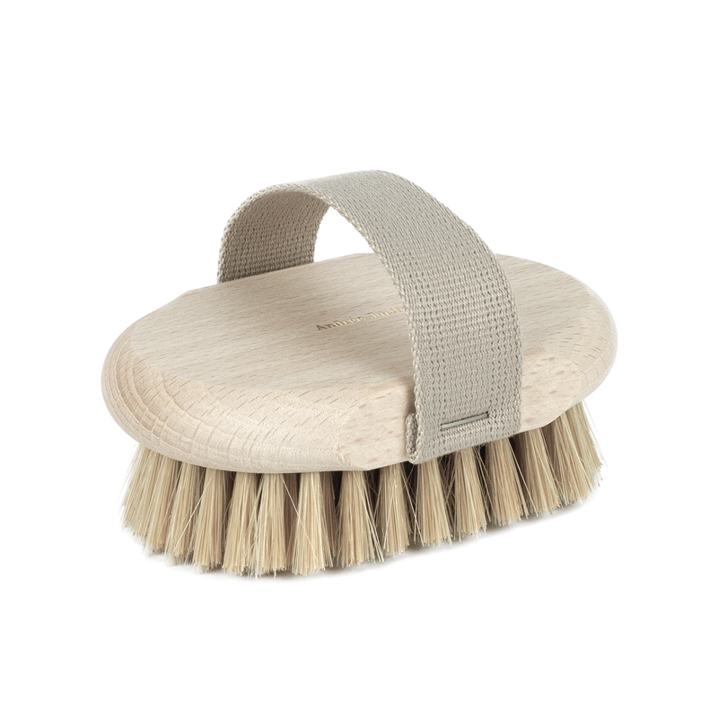 La brosse de massage élimine les cellules mortes et stimule la circulation sanguine.