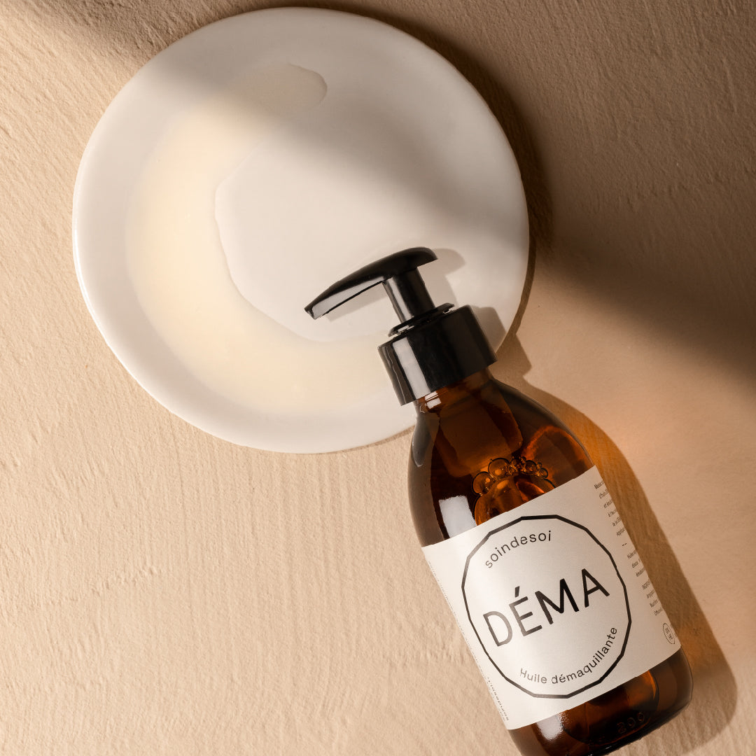 L'huile démaquillante DEMA retire tous les corps gras à la surface de la peau (maquillage, sébum, pollution). Il s'agit du meilleur nettoyant par affinité de textures.