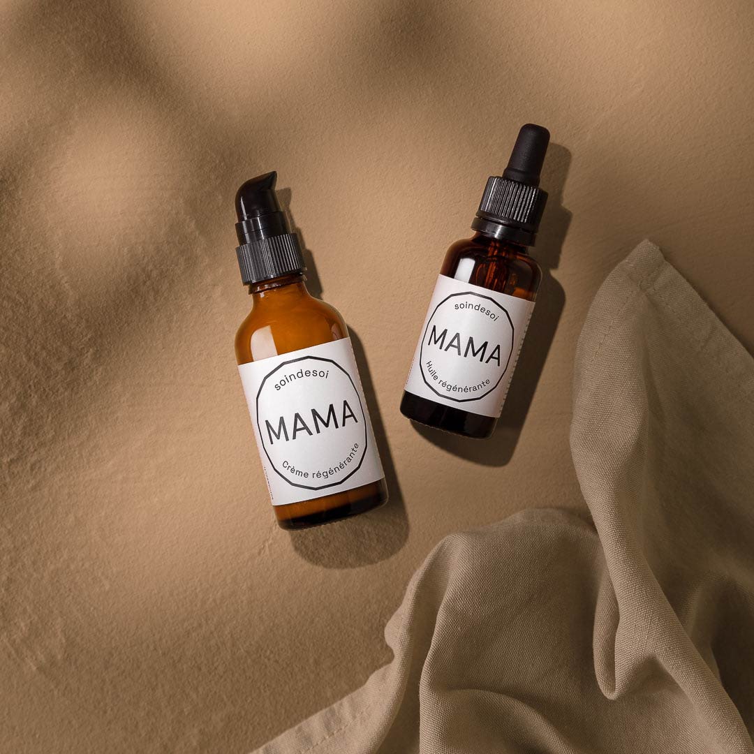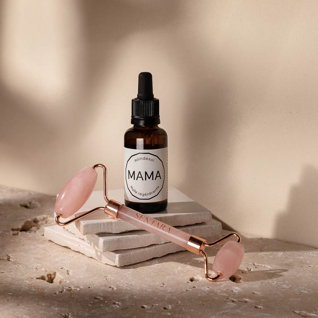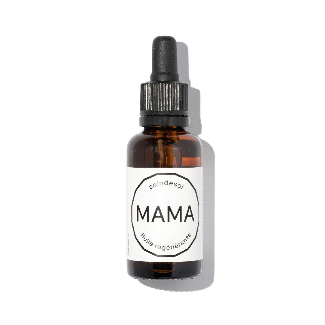 L'huile de soin MAMA tonifie et régénère la peau. Sa texture huile non grasse pénètre rapidement.