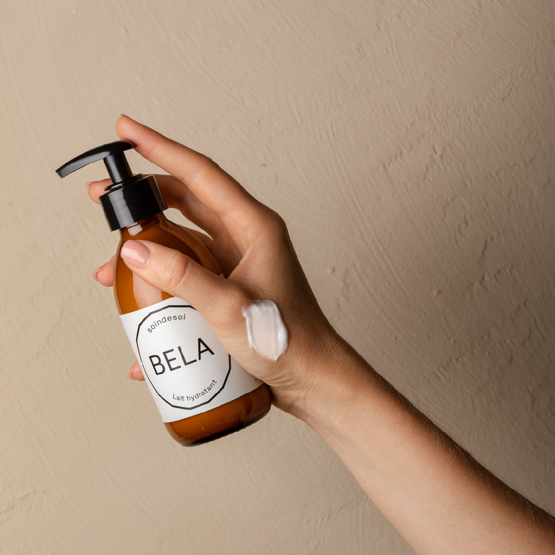 Le lait corps BELA hydrate et apaise les peaux déshydratées. Sa texture gel fluide pénètre rapidement et laisse la peau douce.