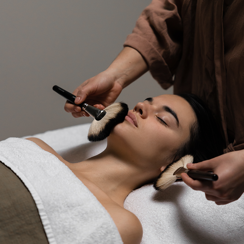Le pinceau en éventail vous permet d'épousseter les grains de votre gommage et de vous détendre.