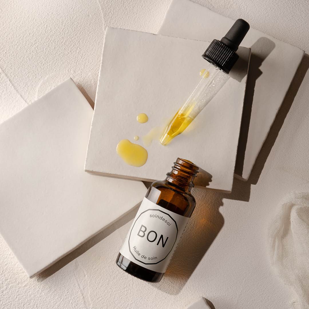 Retrouvez les essentiels pour les peaux sensibles : le sérum BON et la crème BON pour hydrater et apaiser la peau, l'huile de soin BON pour la calmer et la réparer.