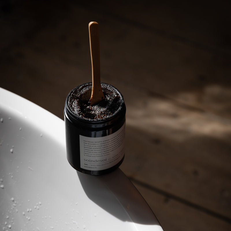 Le gommage MOKA exfolie la peau du visage et du corps en douceur. Composé de marc de café bio et équitable de l'Alchimiste, torréfacteur à Bordeaux et d'huile d'Olive bio, il élimine les cellules mortes, adoucit la peau, la nourrit et la protège.