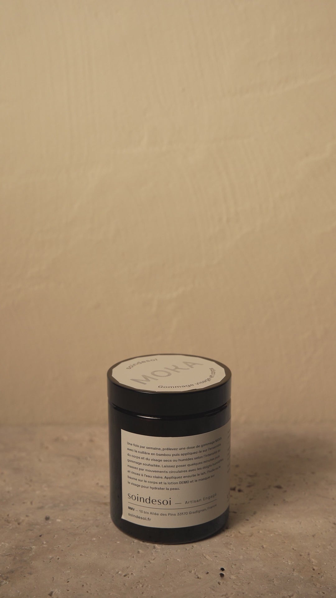 Le gommage visage et corps MOKA exfolie et affine le grain de peau en douceur. Au contact de l'eau, il se transforme en lait et laisse un léger film gras qui hydrate la peau.